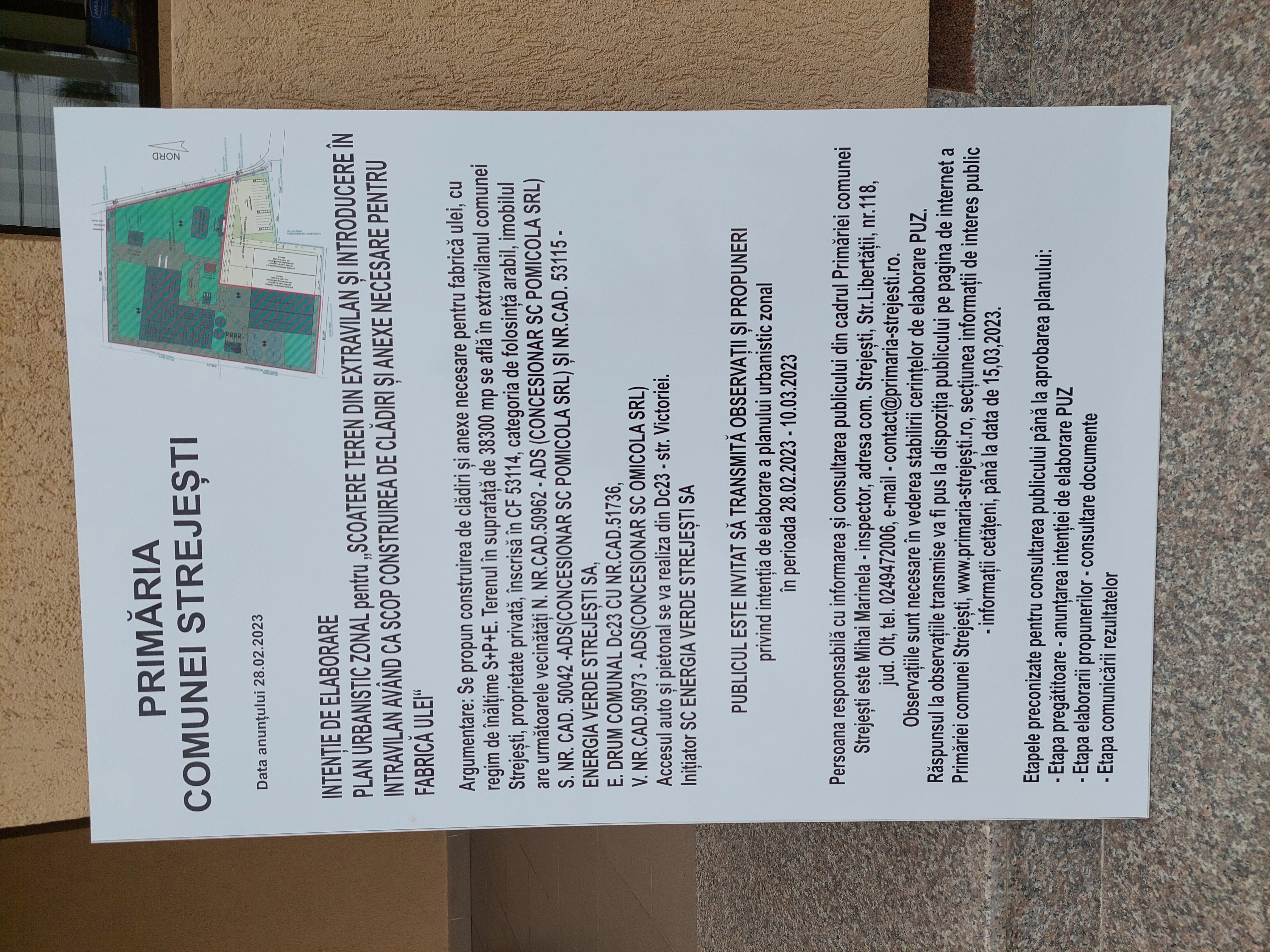 - Anunt public privind semnarea contractului de finantare pentru proiectul - Dotarea cu mobilier, materiale didactice si echipamente digitale a unit. de invatamant preuniversitar din Comuna Strejesti